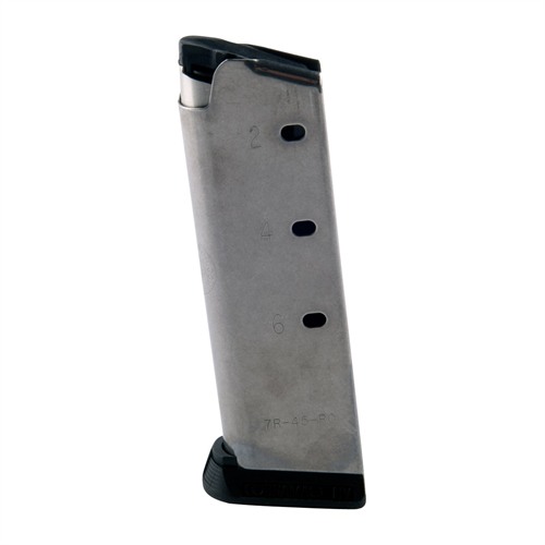 - Naložte zásobník až 7 ranami náboje .45 Auto (ACP).