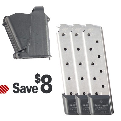 - Kapacita: 8 nábojů, s mírně prodlouženou základnou, která přidává přibližně ¼" k délce magazínu.