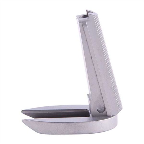 Drops right onto 1911 Auto frames without gunsmithing, and the separate magazine well can be removed without disassembling the pistol. Enlarged magwell greatly increases frame opening for faster and easier magazine changes. Flat housing increases grip surface area to help keep the pistol from riding up during rapid fire. Available in blue or stainless steel with 25 lpi machined checkering that helps keep the pistol centered in your grip. Also available with the exclusive Chainlink and Chainlink II designs. Both machined-in patterns provide a very secure, non-slip gripping surface, without the “sharpness” of conventional checkering that can sometimes abrade your hand or grab at your clothing during a concealed carry draw. Also available for the Officer’s model in blued or stainless steel with 25lpi checkering.