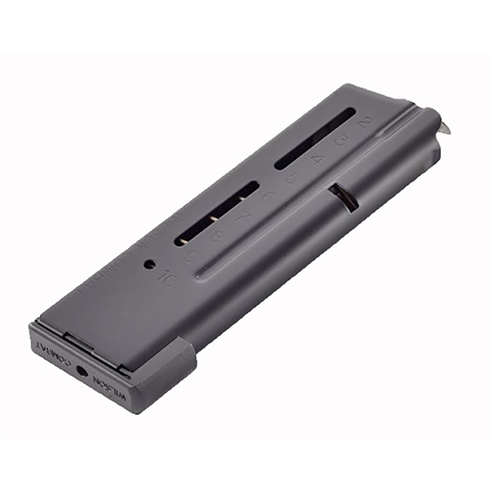 Introducing The Wilson Combat Next Generation ETM-9mm 1911 magazines-Now Completely Redesigned for Enhanced Reliability In the quest for flawless magazine function across a wide variety of custom and production handguns Bill Wilson has redesigned our Elite Tactical 9mm 1911 magazines to feed more smoothly, seat easier and lock back positively in a wider spectrum of guns than ever before. Our “Next Generation” ETM 9mm magazines have arrived and like other Wilson Combat Magazines will raise the bar for 1911 pistol reliability. After months of intensive research and testing by Bill Wilson in a myriad of custom and factory 9mm 1911’s we believe we have solved the issue of magazine reliability in a single stack 9mm 1911. These Next Gen ETM magazines have a redesigned tube with a small front ramp to prevent nose down feeding with short or hollow point rounds. A redesigned back spacer accommodates a wide variety of long-loaded ammunition and a stainless-steel follower and extra power spring ensure slide lockback even in guns with marginal or incorrectly fitted slide stops. These are the finest magazines made for the 9mm 1911 platform and have been rigorously tested by our cadre of professional shooters. Bill Wilson himself has logged over 10,000 rounds of various factory and reloaded 9mm ammunition to develop these magazines which are suitable for competition or tactical use. The Next Generation of 9mm 1911 reliability is available now. 9 or 10 round capacity with numbered tube Easy to load and seat with the slide in battery Available in Stainless Steel or Black finish Positive slide lock when empty .025" Tube Walls - Thickest In The Industry Superb feeding with a wide range of ammunition types Steel follower for flawless slide lock-even with marginal pistols The Stainless Steel ETM has the Strongest Magazine Tube Yet Developed, Virtually Eliminating Feed Lip Cracking, Tube Spread and Cracking and General Fatigue Proprietary Multi-Step Tumbling and Finishing Process Provides Smooth Follower Operation and Insertion into the Weapon Observation Slots Moved to the Rear of the Tube, Located Exactly Where They Need to be to Maintain the Structural Integrity Removable Base Pad for Easy Maintenance and Versatility with Different Base Pad Options No-Risk Service Policy - If the tube spreads or cracks from normal use, We Replace It! Note: Some Kimber® 1911 handguns have barrel feed ramps that are left undressed at the factory and will interfere with the ramped front of this magazine. The barrel can be easily modified by a gunsmith to provide the proper clearance required.