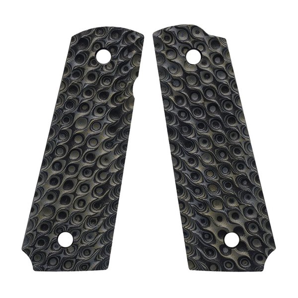 What monsters lurk beneath the waves? VZ Hydra 1911 grips are here to give you a monstrous grip on your gun for when the multi-headed beasts emerge from the darkness. The deep, undulating texture provides aggressive purchase without being overly sharp. The depth and size of the cuts are also great for showing off the patterns that appear in the layers of the G-10 material, especially in the Burl colors. Great for target practice, competition shooting, and even safe queens. Designed to fit all of the most popular full-size (Government or Commander) 1911 models from Colt®, Springfield Armory®, Kimber®, Les Baer®, Dan Wesson Firearms®, and many more. Cut for ambidxtrous safeties Frame: Full Size 1911 Weight: 2.24oz - 63.6g (approximate) Material: G-10 Aggressiveness: 4 out of 5