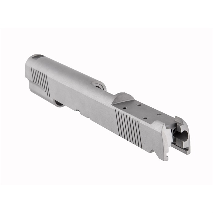 Výsledkem je nízkoprofilová, robustní kombinace optiky a železných mířidel. Slide také disponuje předními a zadními drážkami pro koktání. Je vyroben z forged stainless steel a je připraven k úpravě. Používá malý průměr 9mm Firing Pin, 087-205-825.