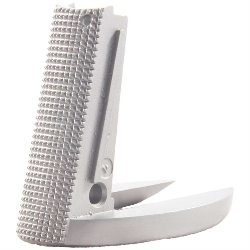 Drop-in, one-piece mag well and mainspring housing makes the mag well opening 100% bigger for easier magazine insertion and faster, “can’t-miss” mag changes. Increases grip length by ¼" for additional leverage and greater recoil control. For a no-slip, no-shift grip, mainspring housing features extra-defined, 20 lpi checkering, unless otherwise noted. Smooth models have uncheckered mainspring housing. Grooved model has full-length vertical grooves on the mainspring housing.