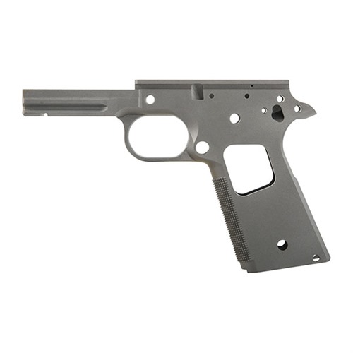 Build an outstanding, custom 1911 using one of these top-quality, single-stack receivers as the foundation. Models and features available for any custom project needs. Precision cast from carbon or stainless steel, and CNC machined to final dimensions. Heat treated to Rc 22-24 for optimum performance and durability. Oversize frame rails allow the gunsmith to achieve an exceptionally tight slide-to-frame fit for more consistent accuracy. Select models available with smooth front strap or with crisp CNC machine-cut checkering. Recon model has the strength and compactness that combat and action shooters require, with an integral accessory rail that accepts laser sights and tactical lights.