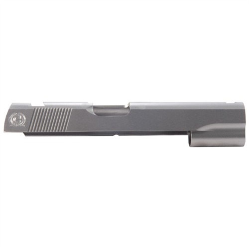SPECS: 4340 carbon steel, in-the-white, or 416 stainless steel, natural finish. Government model accepts 5" barrel. Commander accepts 4.25" barrel. Officers model accepts 3.5" barrel. All Caspian slides require the use of a 9mm/.38 Super firing pin.