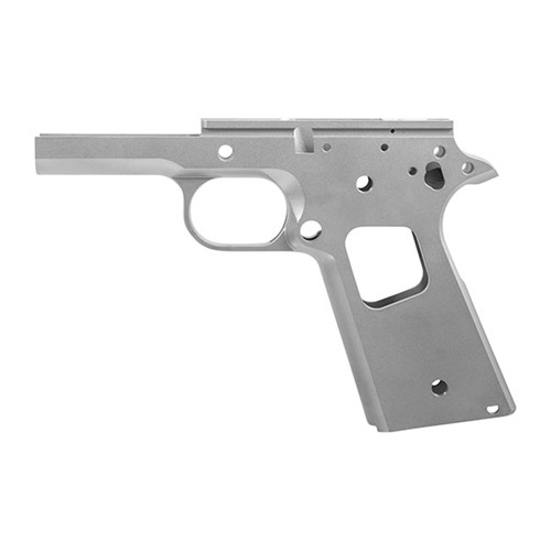 Build an outstanding, custom 1911 using one of these top-quality, single-stack receivers as the foundation. Models and features available for any custom project needs. Precision cast from carbon or stainless steel, and CNC machined to final dimensions. Heat treated to Rc 22-24 for optimum performance and durability. Oversize frame rails allow the gunsmith to achieve an exceptionally tight slide-to-frame fit for more consistent accuracy. Select models available with smooth front strap or with crisp CNC machine-cut checkering. Standard model offers a robust, economical foundation for a great, all-around shooter.