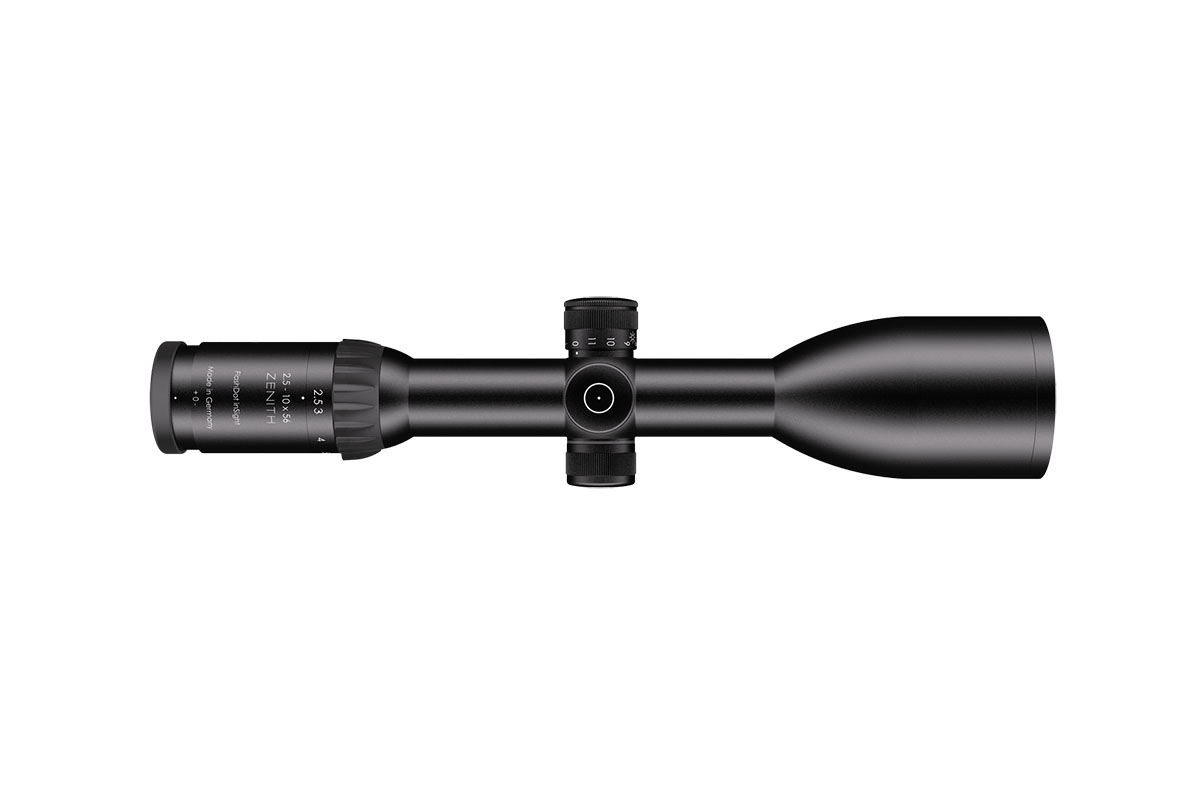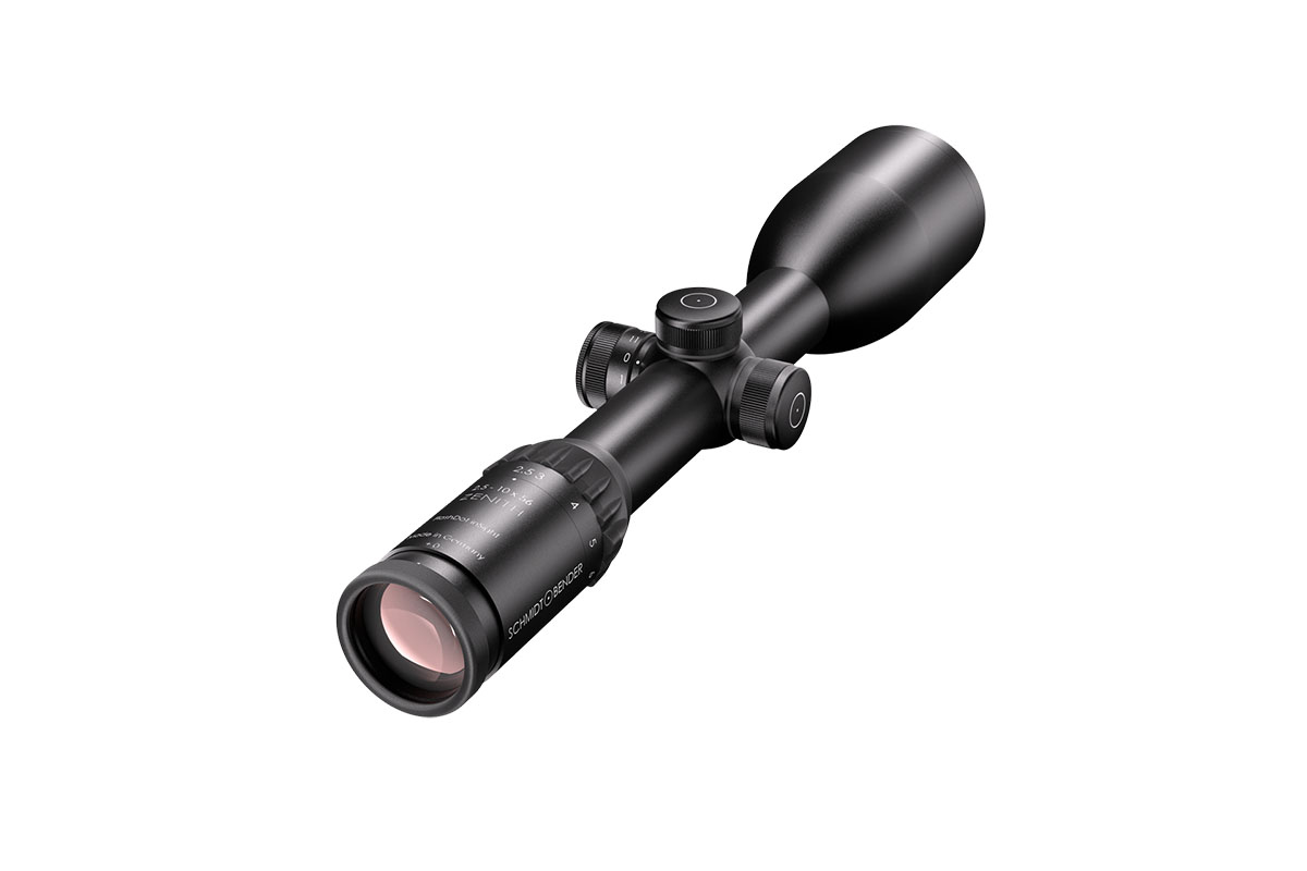 4060537017762 The 2.5-10x56 Zenith from Schmidt & Bender is a premium hunting riflescope engineered for exceptional low-light performance and versatile mid-range precision. With its 2.5–10× magnification and large 56 mm objective lens, it delivers outstanding light transmission, making it the perfect choice for twilight, moonlight, and demanding night hunts. Featuring the renowned FlashDot illuminated reticle in the first focal plane (FFP), the hold points remain accurate across the entire zoom range. The large exit pupil and 90 mm of eye relief provide a bright, comfortable sight picture and fast target acquisition in any shooting position. Its field of view of 14.2–3.6 m at 100 m ensures excellent situational awareness at lower magnification, while higher zoom levels enable precise shot placement at greater distances. The robust 30 mm main tube construction and high-quality mechanics ensure long-term durability and consistent performance under real hunting conditions. Key Specifications: Magnification: 2.5–10× Objective Lens Diameter: 56 mm Reticle: First Focal Plane (illuminated FlashDot) Main Tube Diameter: 30 mm Eye Relief: 90 mm Field of View: 14.2–3.6 m @ 100 m Engineered and manufactured in Germany, the 2.5-10x56 Zenith is a trusted companion for hunters who demand optimal clarity, maximum light performance and reliable precision — especially when every last ray of light counts.