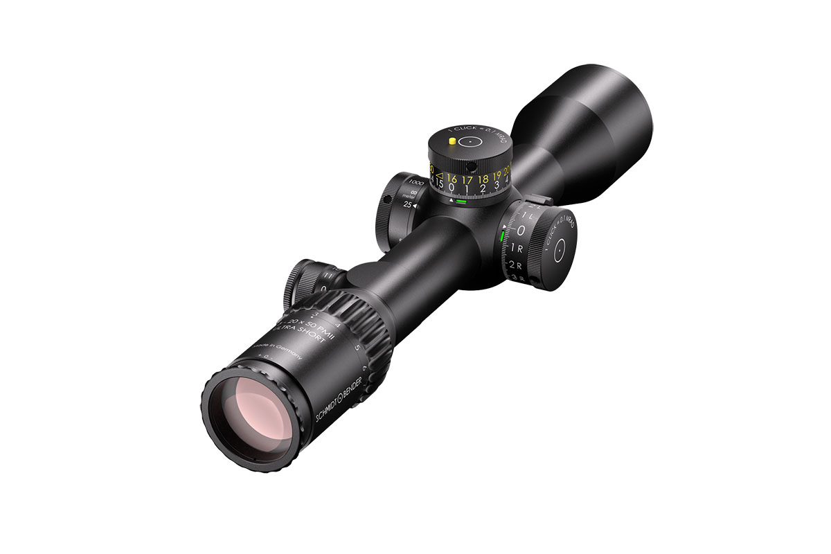 4060537063370 The 3‑20×50 PM II Ultra Short from Schmidt and Bender is a compact yet powerful riflescope engineered for high-performance engagements across medium to long distances. With its 3–20× magnification range and a 50 mm objective lens, it offers outstanding optical clarity and flexibility in a streamlined form factor. Constructed around a robust 34 mm main tube, it maintains a length of approximately 340 mm and weighs around 900 g, striking an excellent balance between size and performance—ideal for mounting on compact platforms without compromising optics. Its field of view spans roughly 13.0–2.1 m at 100 m, providing broad situational awareness at lower magnification and refined detail at the high end. The exit pupil ranges around 11.4–2.5 mm, and the eye relief is approximately 90 mm, supporting comfortable shooting in varied positions while maintaining strong light-gathering even as light fades. Advanced features include first focal plane (FFP) illuminated reticle options, side parallax adjustment (from approx. 25 m to infinity), and a low-profile elevation turret optimized for tactical precision. Key Specifications: Magnification: 3–20× Objective Lens Diameter: 50 mm Main Tube Diameter: 34 mm Field of View: approx. 13.0–2.1 m @100 m Exit Pupil: approx. 11.4–2.5 mm Eye Relief: approx. 90 mm Length: approx. 340 mm Weight: approx. 900 g With precision optics, compact build, and rugged mechanical design, the 3‑20×50 PM II Ultra Short is built for serious shooters who demand premium performance in a versatile package.