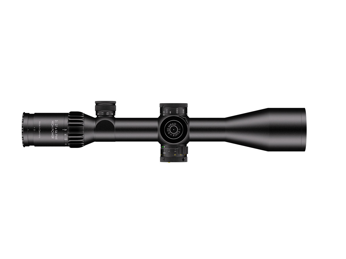 4060537026801 The 3‑27×56 PM II High Power from Schmidt and Bender is a premier tactical riflescope engineered for ultimate versatility—capable of precise performance from near‑range engagements all the way to extreme long‑distance targets. With an expansive 3–27× magnification range, this scope adapts effortlessly across calibres and mission profiles. Its 56 mm objective lens offers exceptional light gathering and clarity, enabling detailed target acquisition even at great distances. The field of view spans approximately 13.0–1.4 m at 100 m, while the exit pupil ranges around 8.7–2.1 mm. Generous eye relief of around 90 mm ensures comfortable alignment and a stable sight picture. Built on a rugged 34 mm main tube, the scope is constructed for demanding environments. The turret system accommodates ultra‑fine click values (e.g., ~0.1 mrad) and massive internal adjustment ranges for elevation and windage—making it suitable for long‑range engagement scenarios. Parallax adjustment commonly spans from around 10 m to infinity, giving flexibility across varied target distances. Key Specifications: Magnification: 3–27× Objective Lens Diameter: 56 mm Main Tube Diameter: 34 mm Field of View: approx. 13.0–1.4 m @100 m Exit Pupil: approx. 8.7–2.1 mm Eye Relief: approx. 90 mm Click Value: approx. 0.1 mrad (~0.5 cm @100 m) depending on configuration Parallax: from ~10 m to infinity Crafted with German precision, the 3‑27×56 PM II High Power is ideal for professionals, competition marksmen or hunters who demand the highest optical clarity, mechanical resilience and full versatility across a wide range of engagement distances.