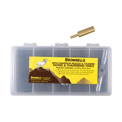 45° chamfering cutter je navržen tak, aby rozbíjel hrany vývrtu pro čistý výstup střely nebo aby upravoval ústí komory válce revolveru pro rychlé přebíjení. Sada obsahuje cutter, rukojeť a jeden pilot, vše uložené v polypropylenové krabičce. Vyměnitelný pilot udržuje cutter správně vyrovnaný. Zakupte si další piloty, abyste mohli použít jeden cutter pro různé ráže. Piloty pro jiné ráže jsou k dispozici samostatně. Cutter s úhlem 45° dodávaný v sadách označených * má průměr 5/8" pro správné úpravy větších ústí hlavně a válce u těchto ráží. Všechny ostatní sady mají průměr ½".