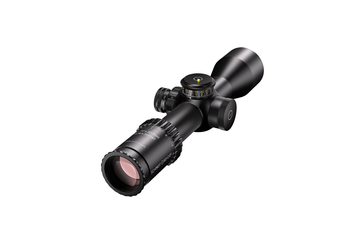 4060537063721 The 3‑20×50 PM II Ultra Short from Schmidt and Bender is a compact yet powerful riflescope engineered for high-performance engagements across medium to long distances. With its 3–20× magnification range and a 50 mm objective lens, it offers outstanding optical clarity and flexibility in a streamlined form factor. Constructed around a robust 34 mm main tube, it maintains a length of approximately 340 mm and weighs around 900 g, striking an excellent balance between size and performance—ideal for mounting on compact platforms without compromising optics. Its field of view spans roughly 13.0–2.1 m at 100 m, providing broad situational awareness at lower magnification and refined detail at the high end. The exit pupil ranges around 11.4–2.5 mm, and the eye relief is approximately 90 mm, supporting comfortable shooting in varied positions while maintaining strong light-gathering even as light fades. Advanced features include first focal plane (FFP) illuminated reticle options, side parallax adjustment (from approx. 25 m to infinity), and a low-profile elevation turret optimized for tactical precision. Key Specifications: Magnification: 3–20× Objective Lens Diameter: 50 mm Main Tube Diameter: 34 mm Field of View: approx. 13.0–2.1 m @100 m Exit Pupil: approx. 11.4–2.5 mm Eye Relief: approx. 90 mm Length: approx. 340 mm Weight: approx. 900 g With precision optics, compact build, and rugged mechanical design, the 3‑20×50 PM II Ultra Short is built for serious shooters who demand premium performance in a versatile package.