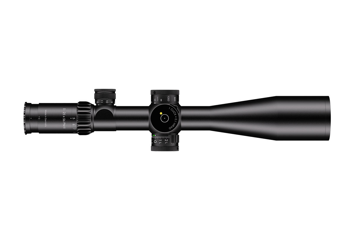 4060537065626 The 5‑25×56 PM II from Schmidt and Bender stands at the pinnacle of variable‑magnification tactical optics, engineered for long‑range precision, outstanding clarity and professional‑level reliability. With a wide 5–25× zoom range and a substantial 56 mm objective lens, it delivers exceptional light‑gathering capability, enabling crisp, bright imagery even at extended distances. Built upon a rugged 34 mm main tube, the scope accommodates large internal adjustment ranges and is designed for demanding use. It features a reticle in the first focal plane (FFP) so that scale and hold‑offs remain accurate at any magnification. The field of view spans approximately 5.3–1.5 m at 100 m, while the exit pupil ranges around 11.0–2.3 mm, and the eye relief remains generous at around 90 mm. The parallax adjustment typically extends from 10 m to infinity, enabling accurate focus from very close ranges through to extreme distances. The turret system is engineered for precision: click values as fine as 0.1 mrad (≈1 cm at 100 m) are available, and a double‑turn elevation turret combined with single‑turn windage allows vast usable correction ranges for wind and elevation. Optical transmission exceeds 90 %, and the construction is nitrogen‑filled, fog‑ and waterproof, ensuring full reliability in all climatic conditions. Key Specifications: Magnification: 5–25× Objective Lens Diameter: 56 mm Main Tube Diameter: 34 mm Field of View: approx. 5.3–1.5 m @100 m Exit Pupil: approx. 11.0–2.3 mm Eye Relief: approx. 90 mm Parallax Adjustment: from ~10 m to infinity Click Value: approx. 0.1 mrad (≈1 cm at 100 m) Optical Transmission: > 90 % Crafted in Germany to the highest standards, the 5‑25×56 PM II is the go‑to choice for military, law‑enforcement and competition shooters who demand absolute clarity, mechanical integrity and extreme flexibility in one optic.