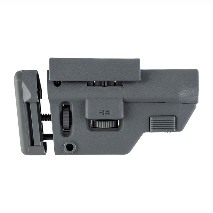 Interested in a precision rifle stock that isn't the bulky, fixed-stock options that dominate the market? The B5 Systems Collapsible Precision Stock provides a solid mounting point for accurate shooting, but this precision-rifle stock can still be easily adjusted or downsized for easy storage and transport. Additional features found on the B5 System Collapsible Precision Stock include an ambidextrous quick-detach sling-swivel socket with limited rotation, as well as a number of fixed sling mounts. The stock also features an adjustment lever complete with a lockable feature, as well as an M-LOK attachment point on the underside of the stock that's compatible with Picatinny rail sections or even a direct-attach, M-LOK monopod. Available color options on this B5 Systems Collapsible Precision Stock are black, flat dark earth, coyote brown, foliage green, olive drab, gray, multicam and woodland.