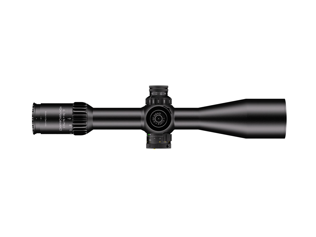 4060537069334 The 6‑36×56 PM II High Performance from Schmidt and Bender is a benchmark optic engineered for serious medium‑ to extreme‑long‑range shooting. With its expansive 6–36× magnification range and a generous 56 mm objective lens, it delivers exceptional clarity, reach and flexibility for demanding applications. Crafted on a robust 34 mm main tube, the scope is compact in length (approx. 390 mm) and relatively light for its class (around 940 g), yet built with the ruggedness and precision befitting the PM II series. The first‑focal‑plane (FFP) reticle ensures accurate hold‑overs, ranging and subtensions at every magnification level. With a transmission rating of well over 90 %, the optical system offers bright, high‑resolution imagery critical for target recognition at extended distances. Its field of view spans about 7.3–1.3 m @100 m, and the exit pupil ranges from approximately 8.3–1.6 mm, providing both wide situational awareness at lower magnification and finely‑detailed views at higher zoom levels. The eye relief is approximately 90 mm, ensuring comfortable viewing across shooting positions. The turret system features ultra‑fine 0.1 mrad click values, and the internal adjustment ranges exceed 40 mrad, giving the shooter a massive envelope for elevation and windage correction. The scope’s innovative “LPI” (Illuminated‑Parallax‑Integrated) system enhances usability, including left‑hand shooter compatibility and more mounting flexibility. Key Specifications: Magnification: 6–36× Objective Lens Diameter: 56 mm Main Tube Diameter: 34 mm Field of View: approx. 7.3–1.3 m @100 m Exit Pupil: approx. 8.3–1.6 mm Eye Relief: approx. 90 mm Transmission: >90% Click Value: ~0.1 mrad Length: approx. 390 mm Weight: approx. 940 g Designed and manufactured in Germany with highest precision, the 6‑36×56 PM II High Performance is ideal for professionals, competition marksmen or hunters seeking top‑tier optical clarity, mechanical integrity and flexibility across distances that demand elite performance.