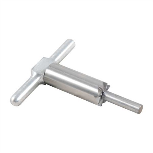 Hardened steel, 90° facing cutter čtvercuje hlaveň po zkrácení; nebo jej použijte k opravě důlků a poškození. Součástí balení je rukojeť a jeden pilot, vše je uloženo v polypropylenové krabici. Vyměnitelný pilot zajišťuje správné zarovnání cutteru. Zakupte si další piloty, abyste mohli používat jeden cutter pro mnoho různých ráží. Piloty pro jiné ráže jsou k dispozici samostatně.
