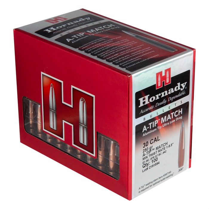 Roky výzkumu a testování od společnosti Hornady® vedly k vytvoření ultimátního nízkodragového, vysoce výkonného match bulletu. A-TIP 30 CALIBER (0.308") MATCH BULLETS jsou ideální volbou pro každého střelce, který hledá maximální přesnost a výkon.