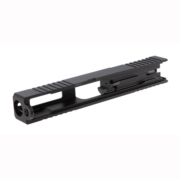 The Brownells Acro Cut Slide for Glock® 19 Gen3 offers the ease and convenience of our popular RMR Slides to folks who prefer to mount an Aimpoint Acro P-1 red dot sight on their Glocks. This slide comes with a slot machined directly into the top for mounting the Acro P-1 - just screw on the red dot (screws included) and hit the range. No additional mounts or hardware to buy! Each Acro Cut Slide for Glock® 19 is precision machined from a 17-4 stainless steel billet and heat-treated to Rc 41-44 for excellent resistance to surface wear. Inside, the slide is machined to factory specs, so it will accept readily available factory or aftermarket parts for Gen3 Glock® pistols. Outside, there's a Glock® factory rear sight dovetail and front sight tenon cut ready for any factory or aftermarket "iron" sights" (actually, plastic or steel) that can be co-witnessed with the Acro P-1. A tough, non-reflective Black Nitride finish boosts the slide's resistance to surface wear and further protects it from corrosion. Fits Gen3 Glock® 19 pistols & clones Pre-cut Aimpoint Acro P-1 mounting slot (screws included) Factory front/rear sight cuts, too Distinctive "window" cutout on top Machined from hardened (Rc 41-44) 17-4 stainless steel billet Factory-style rear cocking serrations come standard on the Acro Cut Slide for Glock® 19, plus additional front serrations for enhanced manipulation. A window cutout on top between the front serrations vents heat to keep the barrel cool during extended fire, AND if you have an aftermarket barrel with a contrasting finish or a unique exterior pattern (fluting, spirals, "flames," etc.), the window helps you show it off a bit! Brownells Gun Tech™ Note: Channel liner required for these slides. Channel liner is a press fit and requires a tool to install. We recommend #777-100-017.