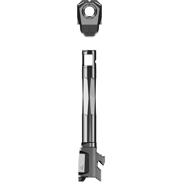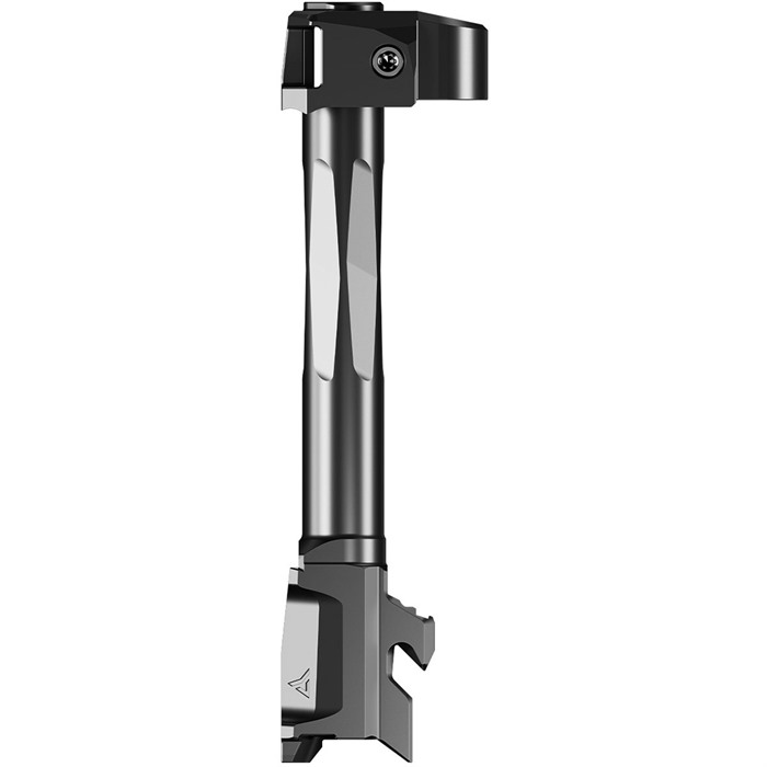 AFTERBURNER + RAMJET FOR GLOCK 48 The Radian® AFTERBURNER™ + RAMJET™ combo provide unprecedented recoil reduction and match grade accuracy in a concealed carry package. The threadless barrel design allows for effortless install/removal for cleaning, while LEGAL FOR SALE IN ALL 50 STATES*. The AFTERBURNER™ compensator is machined from hardened stainless steel and the RAMJET™ barrel from hardened 416R SS; both are enhanced with a Radianite™ coating. This combination achieves low friction, high hardness, and high corrosion resistance, making overall durability and erosion from muzzle blast a non-issue. Angled front faces on the AFTERBURNER aid in holstering. The INTRA-LOK® mounting system uses the taper lock principle; a tapered locking screw interfaces with an angled V-groove on the underside of the barrel. This perfectly times the compensator as it locks down onto the upper barrel profile on the muzzle end of the barrel. INTRA-LOK® allows the user to simply slide the compensator over the barrel, insert and tighten the locking screw, making for a simple and repeatable installation process. This system allows the user to easily remove the barrel from the slide for cleaning. DISCLAIMER: “GLOCK” is a federally registered trademark of GLOCK, Inc. and is one of many trademarks owned by GLOCK, Inc. or GLOCK Ges.m.b.H. Neither Brownells nor this site are affiliated in any manner with, or otherwise endorsed by, GLOCK, Inc. or GLOCK Ges.m.b.H. The use of “GLOCK” on this page is merely to advertise the sale of GLOCK pistols, parts, or components. For genuine GLOCK, Inc. and GLOCK Ges.m.b.H. products and parts visit www.glock.com.