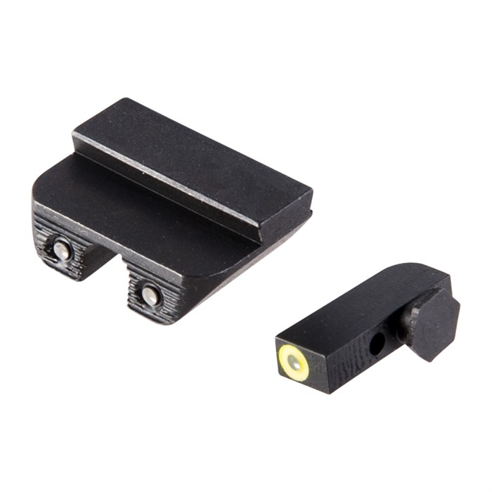 The standard-issue night sight set for the FBI and US Marshals! AmeriGlo’s Agent night sight set for Glock® is a major step forward in night sight design that delivers improved visibility and faster sight acquisition in any lighting conditions. These are low-profile, fixed sights designed to meet the daily carry needs of law enforcement officers. AmeriGlo Agent sights for Glock® employ the proven 3-dot configuration preferred by many experienced shooters. The ProGlo style front blade has a vivid green Tritium lamp surrounded by a bright orange outline, so there’s no trouble identifying your front sight under stress. The fixed rear sight has a rounded U-notch flanked by two green Tritium lamps with subdued black outlines. Drop-in replacements for factory sights Swiss-made self-illuminating Tritium lamps are backed by a 12-year warranty Rear U-notch (all): .165" wide Front sights: .140" wide (G42,43 is .125" Wide) Glock® 9mm/.40 S&W/.357 SIG front: .180" high Glock® 10mm/.45 ACP front: .165" high Glock® 42/43 front: .190" high Gen5 sights fit all models of Glock Gen5 pistols ONLY (front: .200" high) AmeriGlo Agent night sights are machined from high-grade steel barstock, dehorned to prevent snagging on your clothing during the draw, and given a durable, non-reflective black finish to match your Glock’s slide. Even so, the rear sight body is shaped to support one-handed slide racking in an emergency.