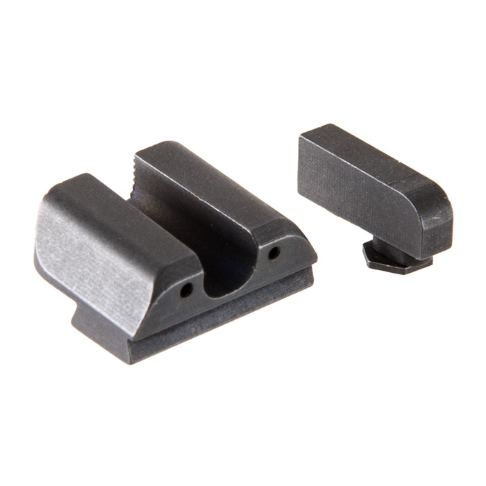 - Fixní zadní mířidlo s zaobleným U-notch a dvěma zelenými Tritium lampami s tlumenými černými obrysy.