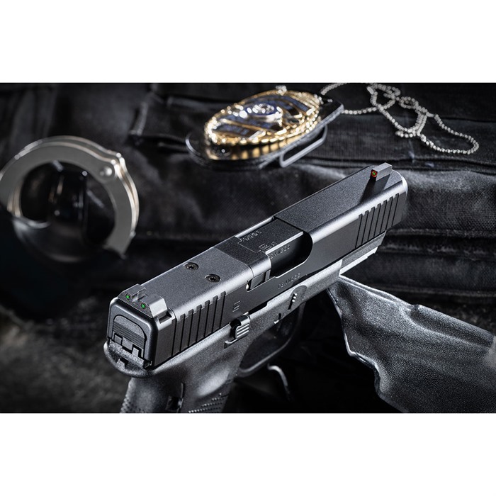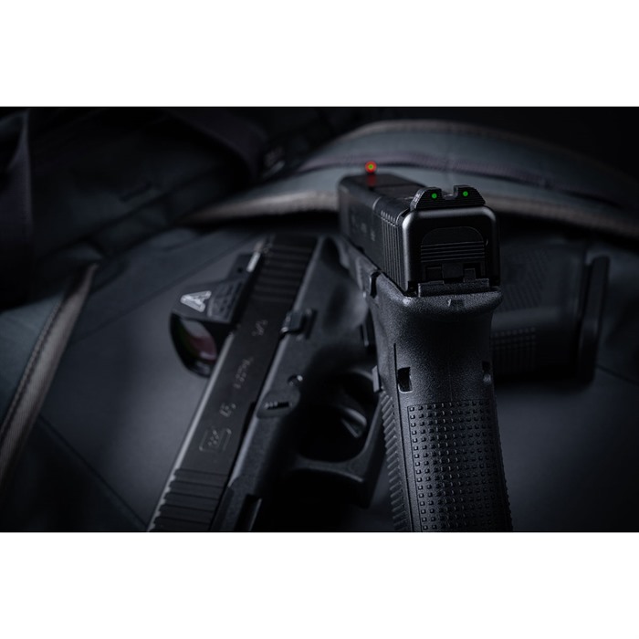 Exclusive to Brownells! The standard-issue night sight set for the FBI and US Marshals! AmeriGlo’s Agent night sight set for Glock® is a major step forward in night sight design that delivers improved visibility and faster sight acquisition in any lighting conditions. These are low-profile, fixed sights designed to meet the daily carry needs of law enforcement officers. AmeriGlo Agent sights for Glock® employ the proven 3-dot configuration preferred by many experienced shooters. The ProGlo style front blade has a vivid green Tritium lamp surrounded by a bright orange outline, so there’s no trouble identifying your front sight under stress. The fixed rear sight has a rounded U-notch flanked by two green Tritium lamps with subdued black outlines. SPECS Front Sight: One Dot Green Tritium with Orange Outline Rear Sight: Two Dot Green Tritium with Black Outline Drop-in replacements for factory sights Swiss-made self-illuminating Tritium lamps are backed by a 12-year warranty Rear U-notch (all): .165” wide Front sights: .140” wide (G42,43 is .125” Wide) Glock® 9mm/.40 S&W/.357 SIG front: .180” high AmeriGlo Agent night sights are machined from high-grade steel barstock, dehorned to prevent snagging on your clothing during the draw, and given a durable, non-reflective black finish to match your Glock® slide. Even so, the rear sight body is shaped to support one-handed slide racking in an emergency. Gen 5 9mm/.40 DISCLAIMER: “GLOCK” is a federally registered trademark of GLOCK, Inc. and is one of many trademarks owned by GLOCK, Inc. or GLOCK Ges.m.b.H. Neither Brownells nor this site are affiliated in any manner with, or otherwise endorsed by, GLOCK, Inc. or GLOCK Ges.m.b.H. The use of “GLOCK” on this page is merely to advertise the sale of GLOCK pistols, parts, or components. For genuine GLOCK, Inc. and GLOCK Ges.m.b.H. products and parts visit www.glock.com.