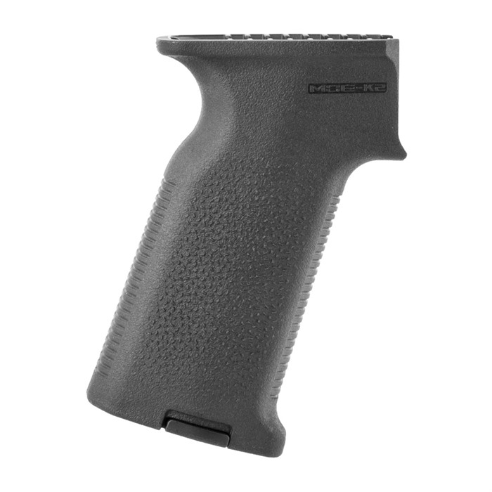 The MOE-K2 AK Grip is a drop-in upgrade for AK47/AK74 pistol grips that offers a more vertical grip angle, but in a full-size grip design. The steeper vertical grip angle improves comfort and control on these shorter LOP rifles that bring the primary hand in closer to the shooter’s body. With an aggressive TSP texture for positive weapon control, compatibility with optional Storage Cores for gear stowage, and a unique backstrap design for proper trigger finger placement, the K2 brings modern styling and ergonomics to the AK platform. Made in U.S.A. FEATURES Drop-in upgrade for AK47/AK74 pistol grips Fits both milled and stamped receivers, including those with grip reinforcement plates More vertical grip angle than typical Kalashnikov designs Unique backstrap shape for proper trigger finger placement Aggressive TSP texture (Trapezoidal Surface Projections) for positive weapon control in all environments Includes a basic grip cap, but accepts optional Storage Cores for customized gear stowage