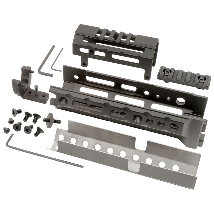 AK Alpha Series M-LOK Handguards Next generation Midwest Industries AK drop-in handguard Developed for full flexibility; allowing multiple configurations such as full handguard, bottom handguard only, Alpha series optic and top cover accessories, and railed gas tubes. Extremely adjustable design giving the user the ability to ensure Alpha fits on most AKM firearms with stamped receivers Specially designed heat shield included with each MI Alpha handguard. No permanent modifications to firearm – allowing user to retain front handguard cap and sling loop Robust design with multiple contact points to firearm. Multiple QD points for sling attachments Lightweight, rugged construction of 6061 aluminum, hardcoat anodized M-LOK™ compatible design includes one five slot picatinny rail section 100% Made in the U.S.A. - Lifetime Warranty May require slight fitting based on receiver size and handguard cap position. Weight: MI-AK-ALPHA6 -- 7.9 oz MI-AK-ALPHA10.0 – 11.4 oz Length: MI-AK-ALPHA6 – 6.0” MI-AK-ALPHA10.0 – 10.0” Compatible with most AK47/AK74 AKM stamped receiver firearms Will NOT fit Yugo or milled receiver firearms. Compatible with Midwest Industries Alpha series red dot mounts and top cover (MI-AK-ALPHA-RDM, MI-AK-ALPHA-T2M, MI-AK-ALPHA-RTC) Compatible with Midwest Industries railed gas tube and Ultimak rail gas tube. M-LOK™ is a trademark of Magpul Industries Corp