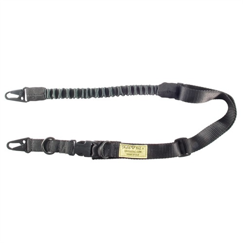 Popruh obsahuje 9½" sekci elastického bungee, která drží zbraň těsně u těla a zabraňuje zachycení. Odolný nylonový obal chrání bungee. Dva ocelové aligátorové karabiny se zámky s pružinovým mechanismem zabraňují neúmyslnému uvolnění, ale umožňují rychlé změny mezi dvoubodovým a jednopunktovým použitím.