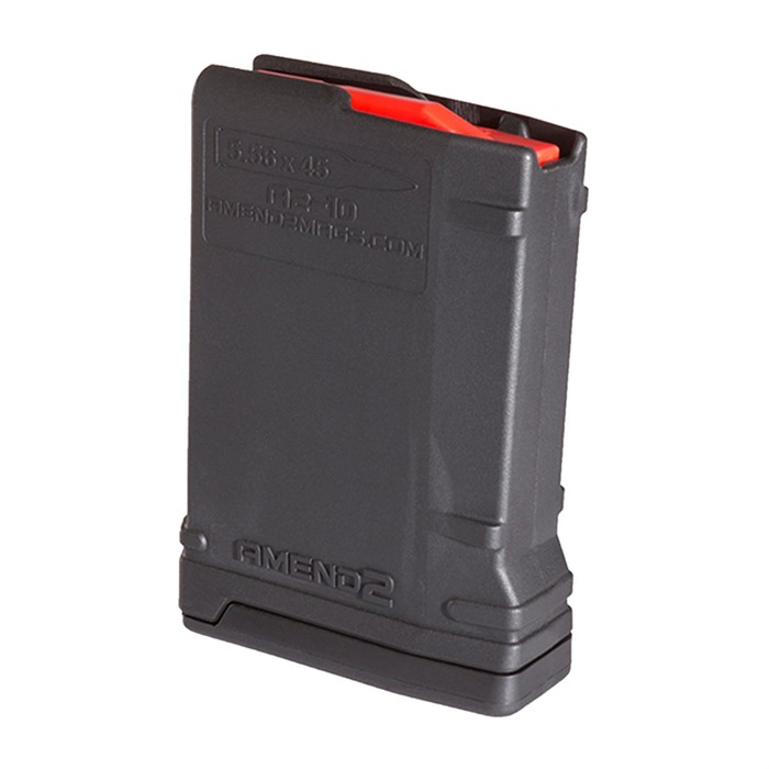 The Amend2® 10 round magazine is a sturdy, reliable 5.56x45 NATO (.223 Remington) AR15/M4/M16 magazine made of advance polymer material. It is a light, durable and excellent alternative to the standard M4/M16 USGI aluminum magazine. The 10 round body profile is ideal for hunting, bench shooting or the various states where capacities are limited by law. The magazine comes in a variety of colors including Black, Flat Dark Earth, OD Green and Gray. FEATURES: Sturdy Impact resistance polymer with textured grip Anti-tilt super follower Heavy duty, non-memory, and non-corrosive stainless steel spring Made in the U.S.A. Material able to cerakote