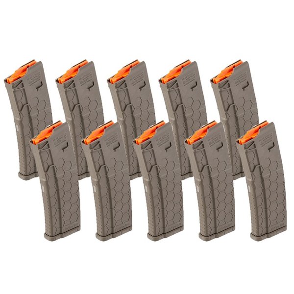 A Superior Grip is achieved with the Patented hexagon surface pattern. Anti Tilt Follower was designed to help stop residue particles from entering back into your rifle. High Visibility Orange Follower allows for safer clearing of your rifle’s chamber. Tool Free Design, no tools or bullet tips needed to disassemble and clean the inside of your AR-15 magazine. A Heat Treated 17-7 PH Stainless Steel Spring, allows for long term magazine storage while fully loaded. Stainless steel resists corrosion unlike music wire or silicon steel springs. Magazines Reinforced Polymer Construction is lighter than other leading AR-15 magazine. 5.56 x 45 / .223 Remington, 300AAC Blackout approved. 458 SOCOM and .50 Beowulf tested working by an independent manufacturer. National Tactical Officers Association tested and approved. NTOA