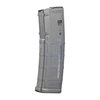 Exceptionally rugged, combat- and competition-ready magazine functions flawlessly, even when left fully loaded for extended periods. Corrosion-proof, self-lubricating one-piece body of fiber-reinforced, molded polymer has no spot welds or joints to impair the follower, and the constant internal curve ensures smooth, unobstructed movement of the round stack. Anti-tilt follower stabilizes the stack to help prevent nose-diving and bolt-over-head failures. Heat-treated, stainless steel spring is stress-relieved for optimal performance. Withstands the heat from prolonged full-auto fire and is not harmed by most bore cleaners and solvents. Exterior ribbing provides added gripping surface; magazine catch notch, rather than a traditional hole, keeps dirt and debris out. Easy-to-grasp ledge on floorplate aids in extracting magazine from pouches; floorplate removes easily for cleaning. Curved-body 30-Round model in MagLevel configuration with windows on both sides of the magazine and a bright, orange indicator to display ammo level. All models available in Black.