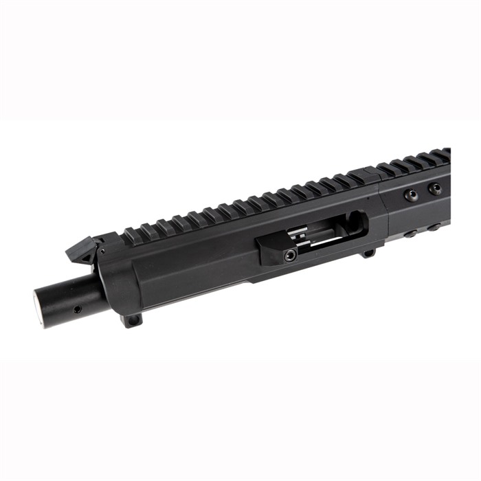 The Foxtrot Mike Products 9mm Upper Receiver comes fully assembled and ready to drop on any pistol caliber lower receiver that uses Glock magazines. With its full-length Picatinny top rail and M-LOK compatible handguard, the Foxtrot Mike 9mm Upper offers plenty of mounting space for optics and other accessories. While the 5” upper receiver utilizes a standard AR style rear mount charging handle the 8.5”, 10.5”, and 16” upper receivers use an ambidextrous, non-reciprocating forward charging handle. A unique interlocking connector between the upper receiver and handguard ensures the barrel nut will not work loose over time. Premium Melonite-finished 4150 carbone steel Button-rifled bore, 1-10" twist ½"-36 threaded muzzle Bolt/carrier unit with hard Melonite finish, too Does NOT work on the BRN-180 lowers Engineered to function reliably, no matter which manufacturers’ lower it’s mated with, the Foxtrot Mike 9mm Upper Receiver is forgiving enough to cycle even the most economical (we’re not saying "cheap"!) steel or brass cased ammo. Foxtrot Mike Products Mike-9 Upper Receivers are not compatible with aluminum cased ammunition, Korean magazines or Spikes Tactical 9mm Glock® lower receivers. Stern Defense 9mm Conversion Adapter is also not recommended for use with Foxtrot Mike Products uppers as it requires adjustment to work properly.