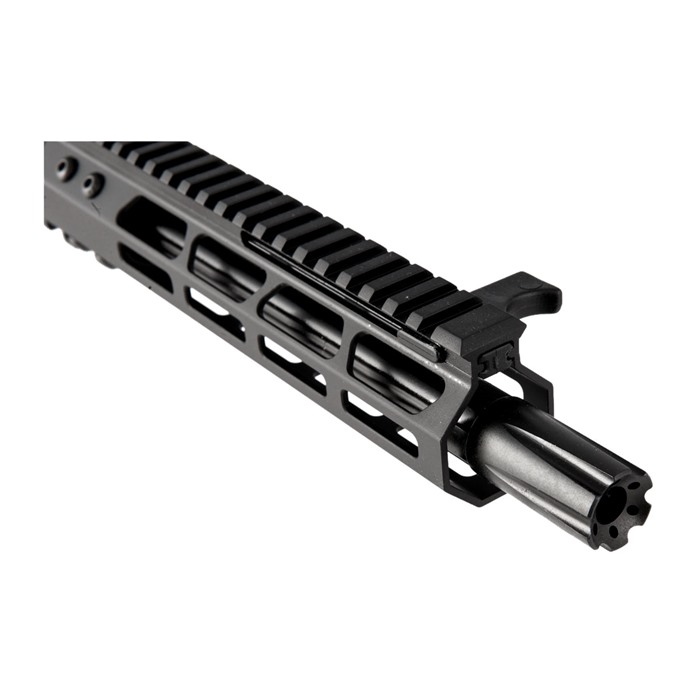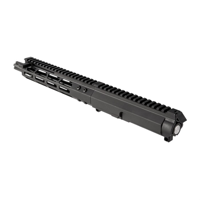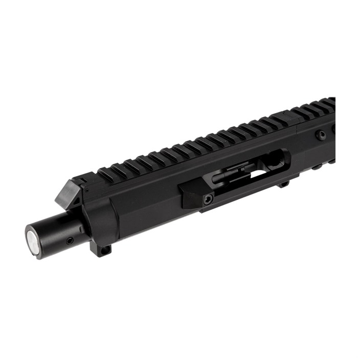 The Foxtrot Mike Products 9mm Upper Receiver comes fully assembled and ready to drop on any pistol caliber lower receiver that uses Glock magazines. With its full-length Picatinny top rail and M-LOK compatible handguard, the Foxtrot Mike 9mm Upper offers plenty of mounting space for optics and other accessories. While the 5” upper receiver utilizes a standard AR style rear mount charging handle the 8.5”, 10.5”, and 16” upper receivers use an ambidextrous, non-reciprocating forward charging handle. A unique interlocking connector between the upper receiver and handguard ensures the barrel nut will not work loose over time. Premium Melonite-finished 4150 carbone steel Button-rifled bore, 1-10" twist ½"-36 threaded muzzle Bolt/carrier unit with hard Melonite finish, too Does NOT work on the BRN-180 lowers Engineered to function reliably, no matter which manufacturers’ lower it’s mated with, the Foxtrot Mike 9mm Upper Receiver is forgiving enough to cycle even the most economical (we’re not saying "cheap"!) steel or brass cased ammo. Foxtrot Mike Products Mike-9 Upper Receivers are not compatible with aluminum cased ammunition, Korean magazines or Spikes Tactical 9mm Glock® lower receivers. Stern Defense 9mm Conversion Adapter is also not recommended for use with Foxtrot Mike Products uppers as it requires adjustment to work properly.