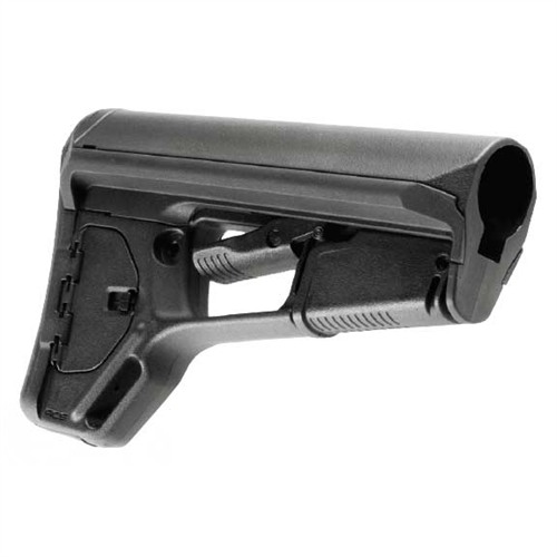 The Adaptable Carbine Stock-Light (ACS-L) is a slimmed-down, lightweight, version of Magpul’s popular ACS stock. The ACS-L provides extra maneuverability by eliminating the ACS’s side storage compartments, while retaining the wide, sloping top for a secure, comfortable cheekweld. Also retained is the storage compartment in the tail of the stock, and the friction locking system that prevents unwanted wobble after extending the stock. Includes a reversible socket for QD pushbutton sling swivels and a 1" sling loop molded in the toe of the stock. The .3" thick rubber recoil pad can be replaced by Magpul Tactical Recoil Pads (sold separately). Models available to fit Mil-Spec (1.14" O.D.) carbine buffer tubes. Buffer tube, carbine buffer, receiver extension nut, and carbine-length action spring not included.