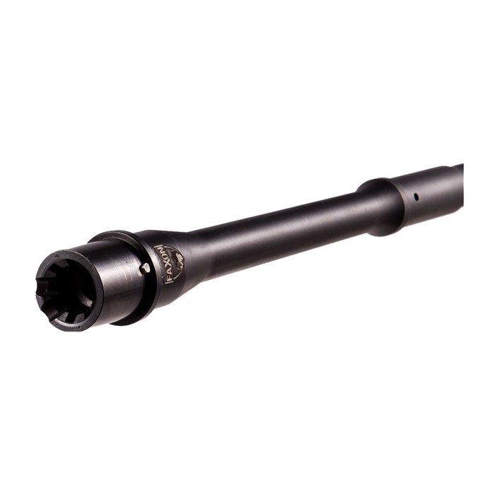 Faxon’s .300 AAC Blackout Gunner Barrels are machined from hardened 4150 Chrome moly in a unique contour that balances rigidity - for excellent accuracy - with light weight for maneuverability. From the muzzle back to the gas block .300 AAC Blackout Gunner Barrels match Faxon’s skinny "Pencil" profile to keep weight down and preserve ease of handling. There’s more metal from the gas block back to the barrel extension to provide rigidity and combat distortion due to heat buildup during long shooting sessions. Available in 7.5" and 10.5", with gas port drilled for pistol length gas tube, and 16" with carbine-length gas port Gas Port: .104" Gas block journal: .750" Outside diameter: 1.9" SAAMI-chambered with 1-8" twist rifling stabilized the full range of 300 BLK bullets 11° target crowned muzzle 5/8-24 tpi muzzle threads Black QPQ Nitride finish with NP3-coated barrel extension Barrel Extension: M4 feed ramps The Faxon .300 AAC Blackout Gunner Barrel profile shifts the center of gravity rearward, putting the weight under the support hand and making the rifle easier to maneuver.