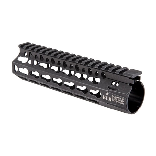 Bravo Company’s machined aluminum BCM KMR Alpha Handguard free-floats the barrel for better accuracy potential while it provides plenty of KeyMod™ slots for add-on rail segments and accessories. Built-in Picatinny top rail is supplemented by KeyMod™ slots at - and between - the 3, 6 and 9 o'clock positions. Fits standard AR-15 upper receiver Lightweight yet robust aluminum construction, reinforced with non-reflective hardcoat anodized finish 1.5" O.D., measured flat-to-flat, 1.3" I.D. Proprietary barrel nut and mounting hardware INCLUDED Comes with one KeyMod rail segment - more rail segments sold separately The Bravo Company BCM KMR Alpha Handguard flares slightly at the front into a special, flat-bottomed shape that's comfortable to hold, and provides stable support when shooting off barricade or obstacle. Brownells Gun Tech™ Note: The KeyMod™ accessory-mounting system was developed by Eric Kincel, who is now the director of Bravo Company’s product development team. It is designed to work in parallel with the existing MIL-STD 1913 Picatinny rail systems, often providing greater versatility, modularity, and ease of configuring accessories than Picatinny rails alone.
