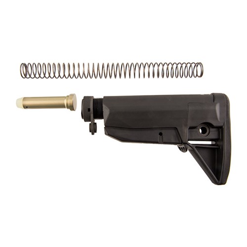 - Ujistěte se, že máte všechny komponenty sady BCMGUNFIGHTER Stock: BCM GUNFIGHTER Mod 0 Stock, prodloužení přijímače, zámkovou matici, pružinu karabiny, tlumič karabiny a montážní desku pro QD swivel na konci přijímače.