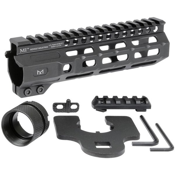Kompletně vyrobeno v USA, Midwest Industries Combat M-LOK Rail Handguard zahrnuje tepelně ošetřenou matku hlavně a instalační klíč.