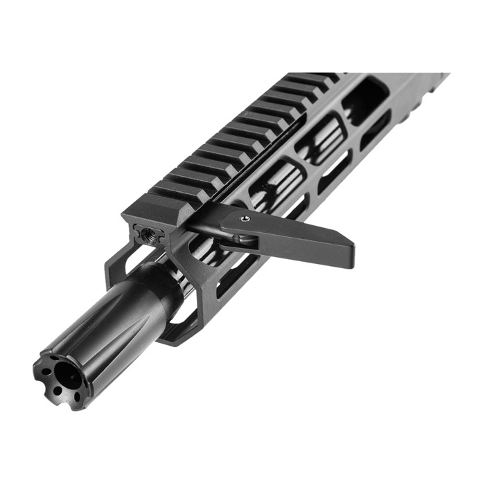 Styled after the Colt-pattern pistol-caliber carbine, the Foxtrot Mike Products AR-15 FM-9 Monolithic 9mm Upper Receiver offers AR aficionados with the opportunity to put together a pistol-caliber carbine for their next build. The Mike-9 Monolithic 9mm Upper Receiver can be had in three different barrel lengths, so whether you're building a pistol or a carbine, there's a setup that's perfect for your build. Each complete upper is built from 6061-T6 aluminum and includes a proprietary charging-handle design that's non-reciprocating. Though designed to work with lower receiver that utilize Colt SMG magazines, these uppers are also compatible with Glock® magazine feed lower receivers. Includes M-LOK compatible handguard All three uppers feature an Ultra-Light PCC barrel Barrel lengths: 16, 10.5 or 8.5 inches 16" barrel comes with FM-9 Muzzle Brake 8.5" and10.5" barrels come standard with the forward blast diffuser 10.5" Upper Receiver features 8.5" Ultra-Light Barrel with a 10.5" Handguard for an ultra-compact upper Made in the USA Black finish 1/2-36" threads Each Foxtrot Mike Products AR-15 FM-9 Monolithic 9mm Upper Receiver is completely made in the USA. Please note: Foxtrot Mike Products upper receives do not support aluminum cased ammunition, Korean manufactured magazines, and Spikes Tactical 9mm Glock® lower receivers.
