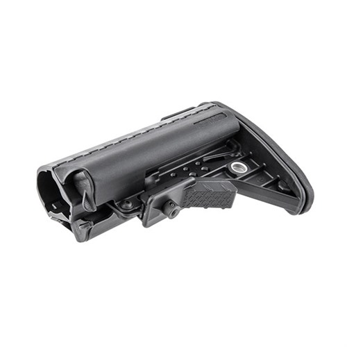 - Nastavte pažbu na požadovanou délku stisknutím tlačítka pro nastavení a posunutím pažby na odpovídající pozici.