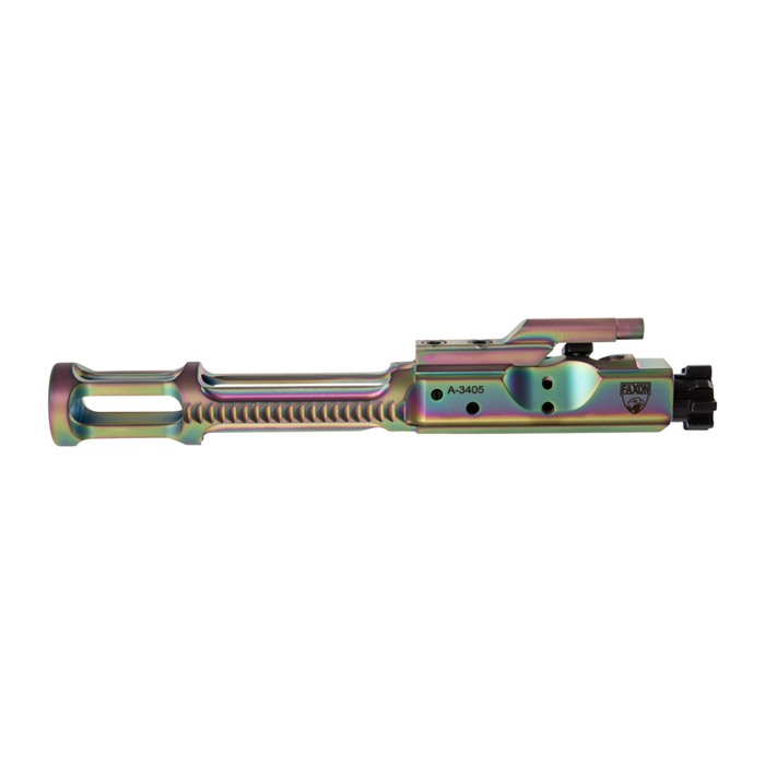 Všechny bolty jsou plně testovány pomocí MPI, aby se zajistilo, že materiál je v pořádku a bez vad. Bolt lugs jsou fazetovány pod úhlem 45 stupňů, aby se zajistila spolehlivá funkce i pro nejvyšší tlakové ruční náboje a rychlé lehké akce. Faxon Bolt Carrier Groups jsou superfinishované, aby se snížilo tření, zvýšila hladkost provozu a snížilo fouling. Dále jsou plně automaticky hodnoceny a udržují trip pro plnoautomatické spoušťové skupiny a nové vícefázové spoušťové systémy.