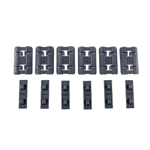 M-LOK Type 2 Rail Covers are low-profile, two-piece covers that install directly onto M-LOK compatible systems. These M-LOK Covers are non-orientation specific which allow the user to mount them in any direction desired without affecting function. The contact surfaces on these covers are textured using the Magpul TSP texture for additional grip, adding slightly more than 1/8” from the mounting surface, these covers also feature a beveled contour to minimize potential snagging. The locking tab is pre-scored down the center to allow the user to snap off sections and mix and match colors for a more custom look. Includes six panels. Each covering one M-LOK slot.