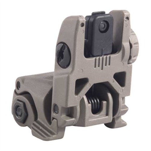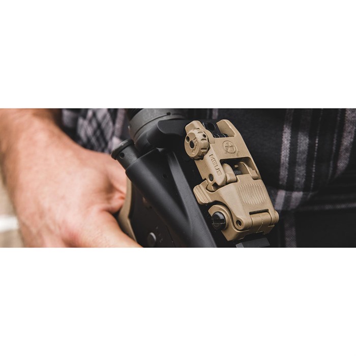 Tyto nízkoprofilové polymerové mířidla se okamžitě nasazují jedním dotykem prstu a poskytují záložní míření v případě selhání primárního optického zařízení. Jejich aerodynamický tvar znamená, že se nezachytávají o větve, popruhy nebo jinou výstroj, když jsou složené.