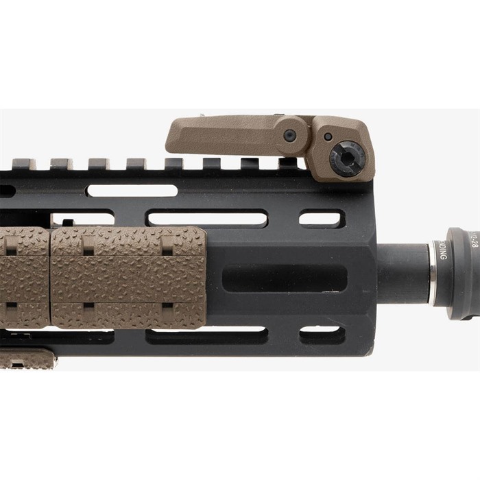 Jediným stisknutím tlačítka s pružinovým mechanismem se vyklápí sklápěcí přední mířidlo Magpul MBUS 3, když je to potřeba, a dosahuje standardní výšky mířidla AR-15. K úpravě výšky tohoto mířidla nebudete potřebovat žádné nástroje a je zde dokonce zahrnuto i přední mířidlo s dvojitou šířkou, které je podobné tomu, které se nachází na MBUS Pro.