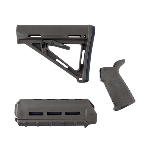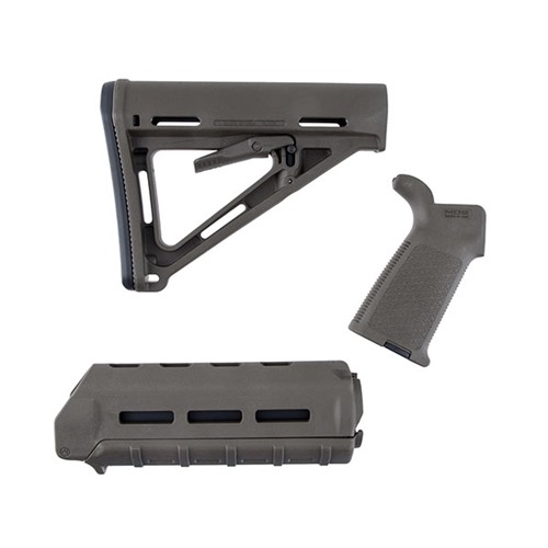 - Zarovnejte zásobník MOE MilSpec, MOE karabinu a MOE rukojeť s odpovídajícími montážními body na vaší pušce.