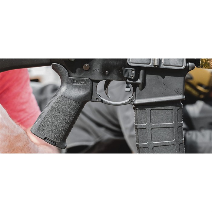 Magpul Original Equipment (MOE) grip is a durable, economical, easy-to-install replacement for factory pistol grip that gives the shooter a solid, secure grasp. Rigid, fully supported one-piece construction from the same reinforced, high-impact polymer as the MIAD grip, with crackle texture on the sides and deep horizontal grooves on frontstrap and backstrap. Curved beavertail similar to the MIAD B2 insert fills the grip-to-receiver junction to help you maintain a comfortable hold and protect the web of your hand during sustained firing. Compatible with Magpul MIAD Grip Cores and Enhanced Aluminum Triggerguard, available separately.
