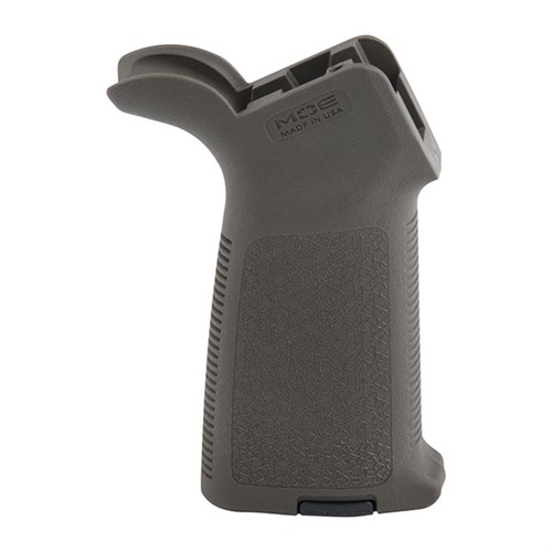 Magpul Original Equipment (MOE) grip is a durable, economical, easy-to-install replacement for factory pistol grip that gives the shooter a solid, secure grasp. Rigid, fully supported one-piece construction from the same reinforced, high-impact polymer as the MIAD grip, with crackle texture on the sides and deep horizontal grooves on frontstrap and backstrap. Curved beavertail similar to the MIAD B2 insert fills the grip-to-receiver junction to help you maintain a comfortable hold and protect the web of your hand during sustained firing. Compatible with Magpul MIAD Grip Cores and Enhanced Aluminum Triggerguard, available separately.