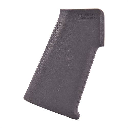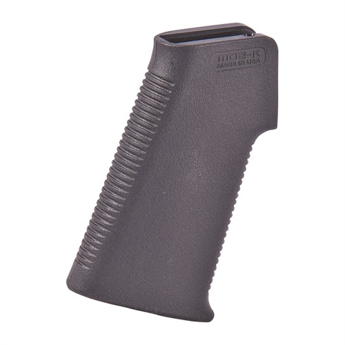 Designed as a drop-in upgrade for the standard AR15/M4 pistol grip, the MOE-K Grip provides an extremely low profile and compact design with a steeper grip angle compared to more traditional styles. The more vertical grip angle is optimized for use on PDW (Personal Defense Weapon) configurations and improves comfort and control on short LOP rifles that bring the primary hand in closer to the shooter's body. The thin profile and lack of backstrap 'beavertail' also makes it an excellent choice for shooters who prefer a smaller grip circumference. FEATURES All mounting hardware is included. One-piece reinforced polymer construction More vertical grip angle than standard A2 grips Minimalist design provides a compact and narrow profile Aggressive TSP texture for positive weapon control Made in the USA SPECS Platform: AR10, AR15, M4, M16, M110, SR25 Grip Angle: 20 degrees Height, receiver to bottom: 3.8 in. Thickness, max: 1.0 in. Weight, w/ hardware: 2.4 oz. NOTE: Will also fit most 7.62 NATO AR10/SR25 style of rifle