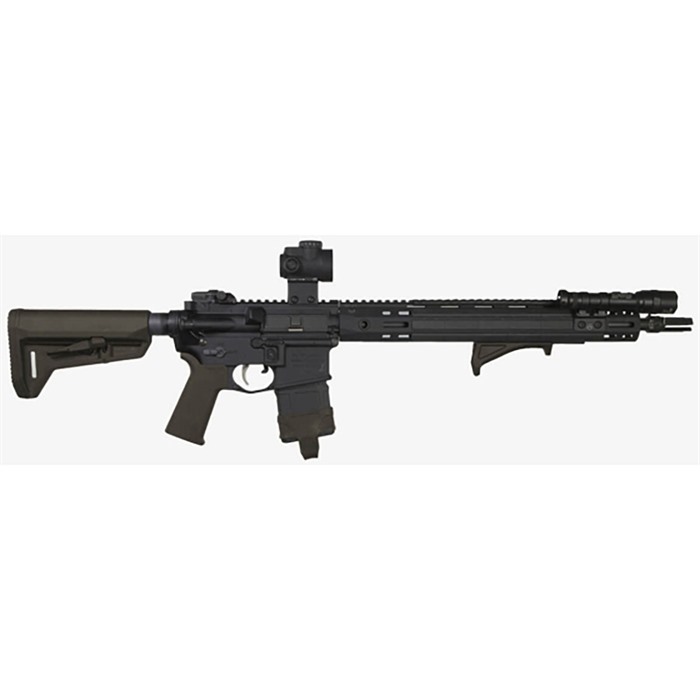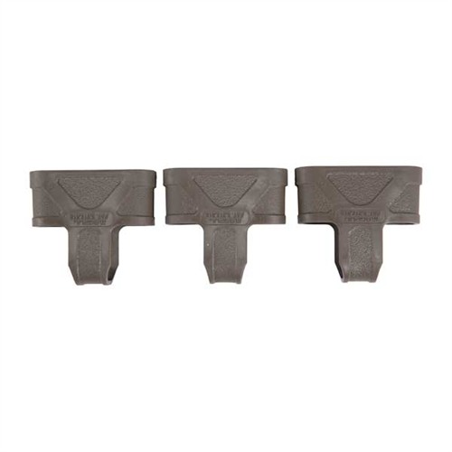 Thermoplastický kroužek nainstalovaný na základně zásobníku pušky nebo subgunu poskytuje snadno uchopitelnou rukojeť pro bezkonkurenční rychlost a ovladatelnost během stresových, taktických výměn zásobníků. Recessed, rough texture poskytuje pozitivní grip pod kluzkými nebo mokrými podmínkami. Prstový kroužek funguje jako tlumič nárazů, aby chránil zásobník před poškozením při pádu z pušky. Tiší zásobníky uložené vedle sebe v pouzdře.
