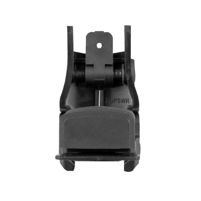 Mission First Tactical AR-15 Flip-Up Rear Sight se vyznačuje tělem vyrobeným z bojem prověřeného polyamidového polymeru a nabízí dvojitý otvor pro rychlé zaměření na cíle na krátkou vzdálenost a přesnost na dlouhé vzdálenosti.